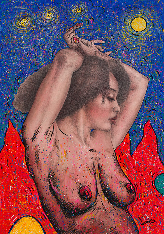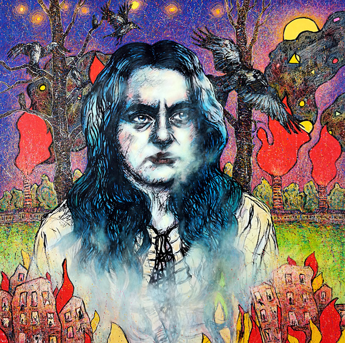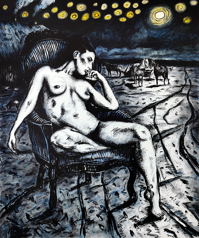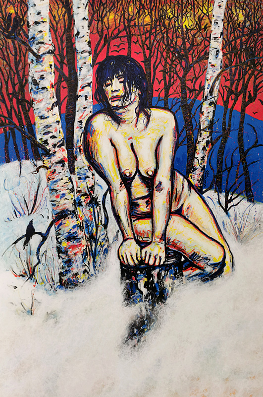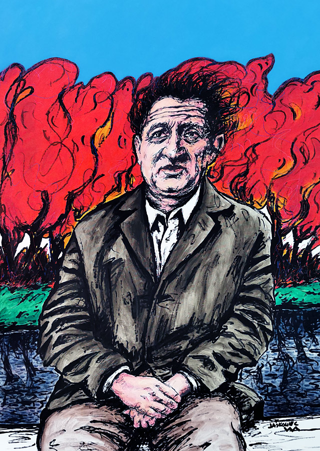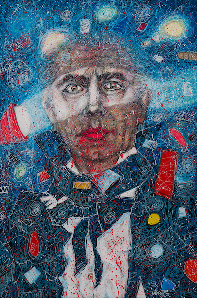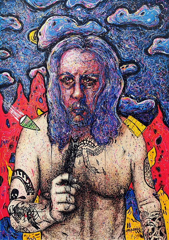 WITKACY / mix media and own technique on canvas / 100x130cm WOMAN ON FIRE / KOBIETA W PŁOMIENIACH - mix media on cardboard / 100x70cm WINTER - acrylic on canvas / 170x200cm BALLADYNA - akryl na płótnie / 160x160cm MAŁY BIAŁY DOMEK - akryl na płótnie / 100x120cm ACH - akryl na płótnie / 100x120cm THE STRANGER - acrylic on cardboard / 100x70cm DRACULA / mix media and ownt technique on cardboard / 50x70cm ALBERT EINSTEIN / mix media and own technique on canvas / 50x70cm MARILYN MONROE / mix media and own technique on canvas / 50x70cm RAFAŁ WOJACZEK / mix media and own technique on canvas / 100x130cm